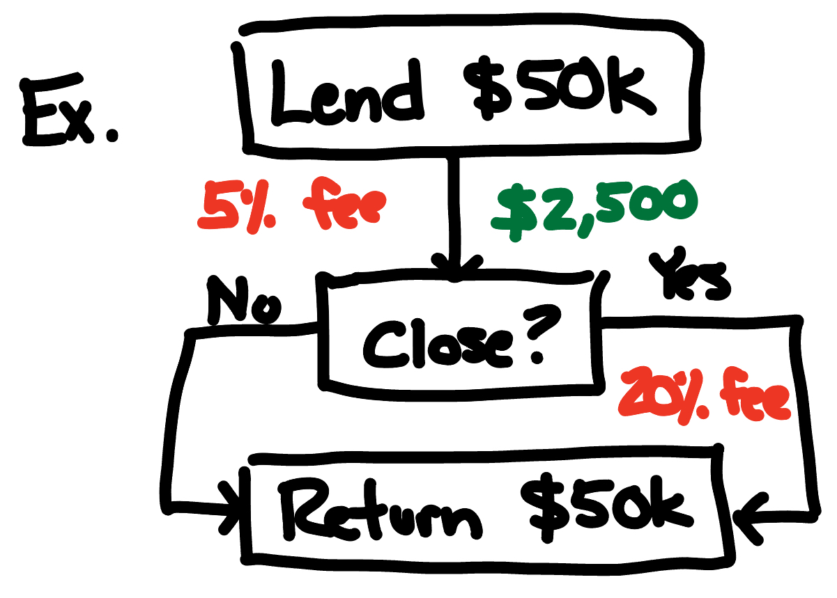 For EMD, we charge the 5% fee up front to pay our team for underwriting and processing the deal. Sadly we must do this so we don't end up losing money by funding your cancelled deal. This is significantly lower than what most people charge when a deal closes, so if you're confident in your deal you'll save lots of capital.